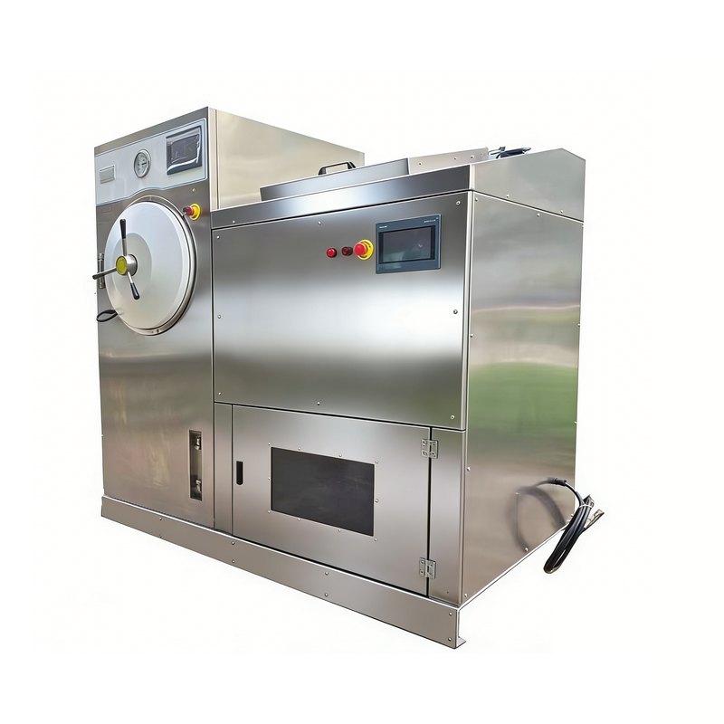 This equipment is an ideal solution for disposal the biohazard waste such as sharps,gloves,lab-ware,glass, plastics, rubber tubing and so on. Its integrated sterilizing and shredding system not only reduces the volume of waste,but also ensures medical waste been fully and safely disposal on-site. The sterilization parts adopts high technology of pulse vacuum, which is more safe and efficient,4 shafts shredder helps to extrude and cut sterilized waste into small pieces and reduce the volume of waste to 20%; Further more, this machine adopts PLC and Human-machine interface control system and with intelligent integrated design,with stable and reliable performance, intuitive and easy to use. It is widely used in laboratories, dialysis centers, clinics and hospitals.